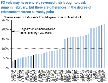 EURCAD vols also have the advantage of very little risk premium priced into them having reversed more than 100% of their VIX-spike gains per above chart, and can also potentially benefit from idiosyncratic NAFTA-related stress.