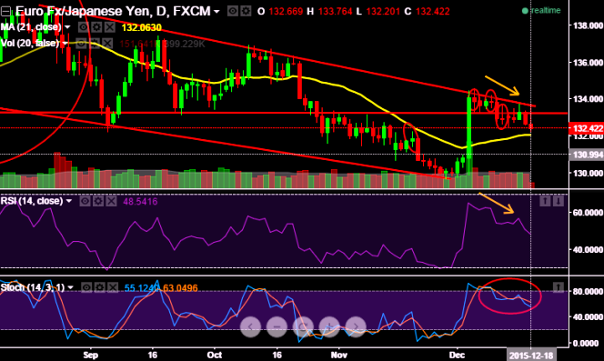 EUR/JPY is steaming up with heaps of bearish indications by leading oscillators in addition.