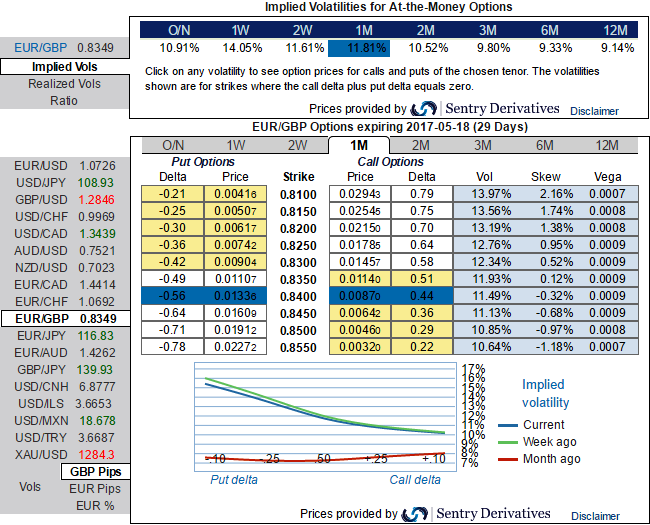 Fading IVs towards 12.7% 1m tenors, the tepid IVs among G10 FX space despite the fact Eurozone elections are lined up appear to be conducive for exorbitant call option writers as the delta risk reversals are bidding for puts progressively with negative numbers that signify hedging arrangements for downside risks over the period of time.