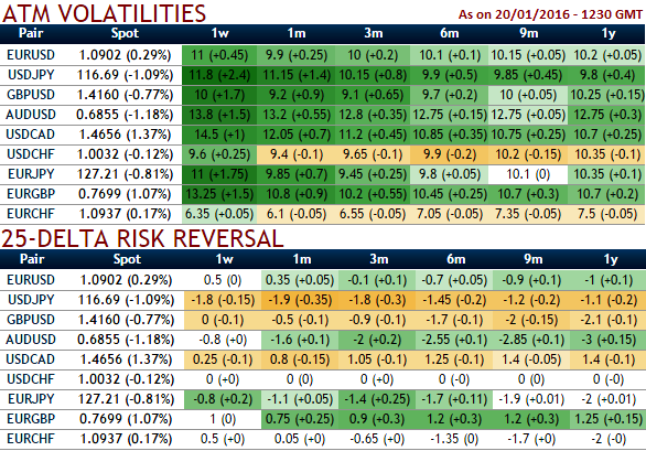 The pair favours Yen's writers as the ATM IVs likely to perceive higher implied volatility at almost around 12% of 1wexpiries and 11.2% for 1m expiries that has increased from last week's 8.75%.
