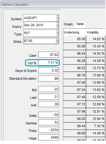Entering into the above recommended AUDJPY positions when implied volatility ticks at around 7.51% and expecting for the inevitable adjustment is a smart approach, regardless of the direction of price movement. Based on volatility and time decay, the strategy is a "price neutral" approach to options, and one that makes a lot of sense.