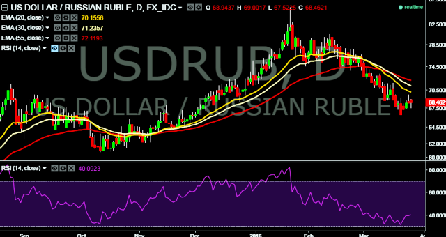 We prefer to take short position in USD/RUB around 69.00, stop loss 70.9132 and take profit at 67.00/ 66.34 levels.