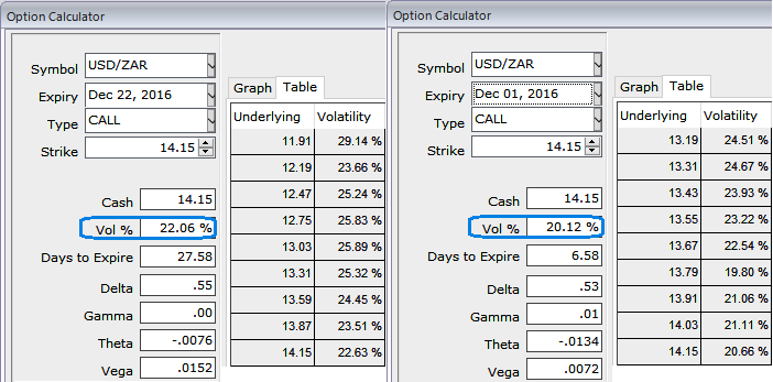 Anticipating further price upswings in the underlying spot of USDZAR, on hedging front, we recommend positioning long USDZAR (ZAR has been significantly overshooting fundamentals), which makes buying USDZAR vol all the more appealing.