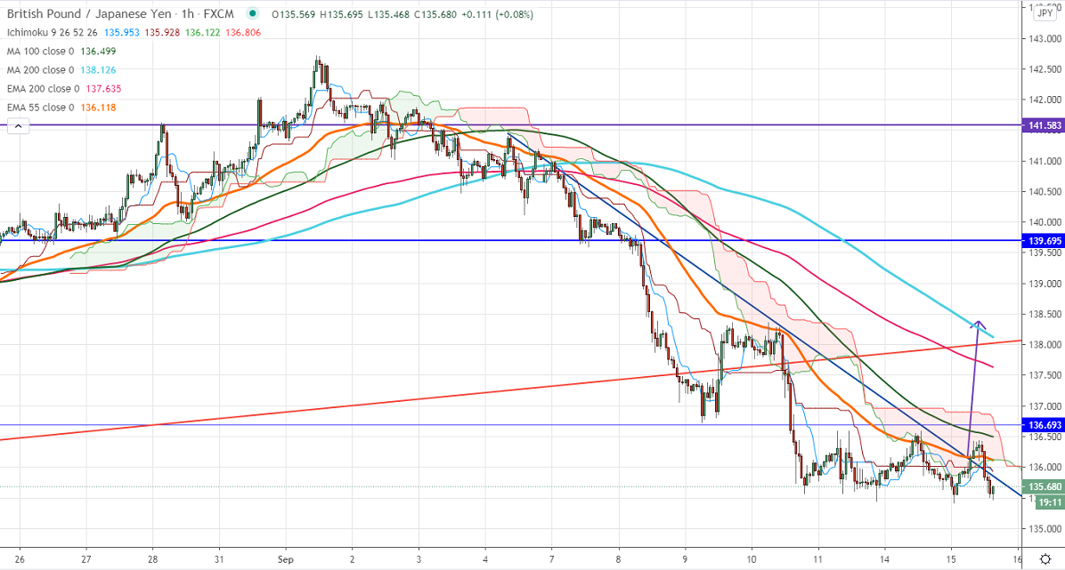 It is good to sell on rallies around 136.55-60 with SL around 137.50 for the TP of 134.80/133.98.