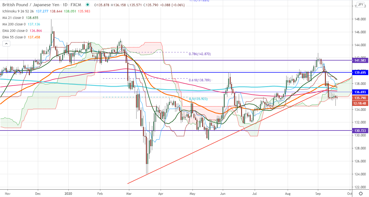 It is good to sell on rallies around 136.35-40 with SL around 137 for the TP of 133.98.