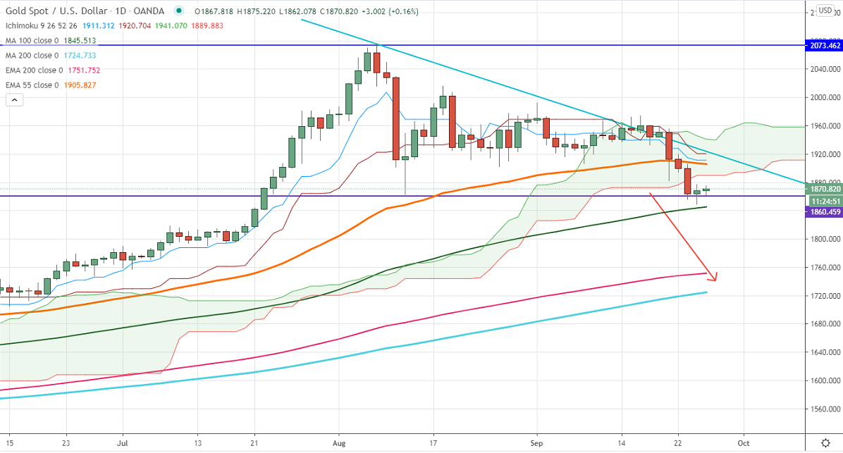 It is good to sell on rallies around $1880-81 with SL around $1900 for the TP of $1800/$1760.