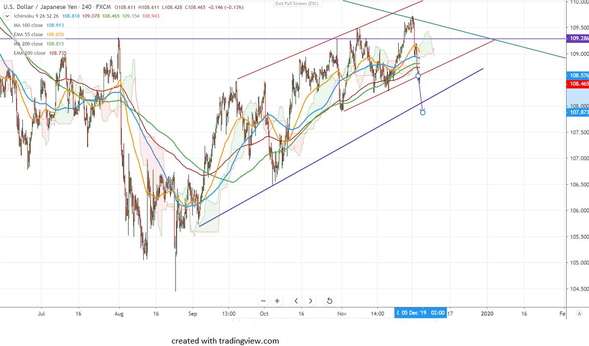 USDJPY continues to trade lower for 3 rd consecutive days and lost more than 100 pips on trade war uncertainty between the US and China. President Trump has tweeted that he like "idea of waiting until after the election for the China deal."Earlier on Monday US told that it would reimpose tariffs on steel and aluminum imported from Argentina and Brazil. It hits a low of 108.48 and is currently trading around 108.45.