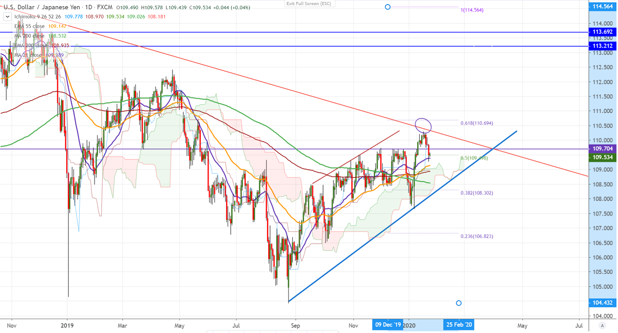 As per our analysis, USDJPY continues to trade lower and lost more than 100 pips from the temporary top 110.29. According to China's National Health Commission, the number of cases infected due to coronavirus has increased to 830. The travel ban has been issued by local governments to the eight cities in Hubei. The pair hits a low of 109.26 and is currently trading around 109.529.