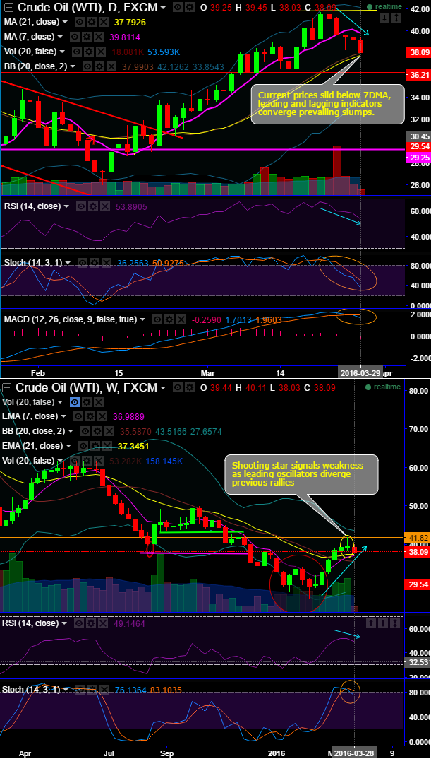 Current prices slid below 7DMA, leading and lagging indicators converge prevailing slumps.