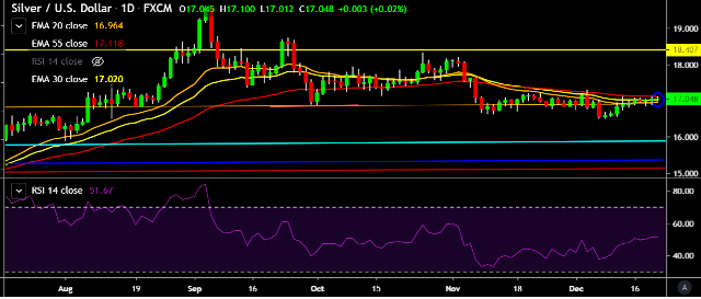 We prefer to take long position on XAG/USD only above $17.10, stop loss at $16.87 and target of $17.18/$17.32.