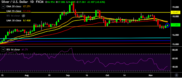 We prefer to take long position on XAG/USD around $17.00, stop loss at $16.86 and target of $17.22/$17.40.