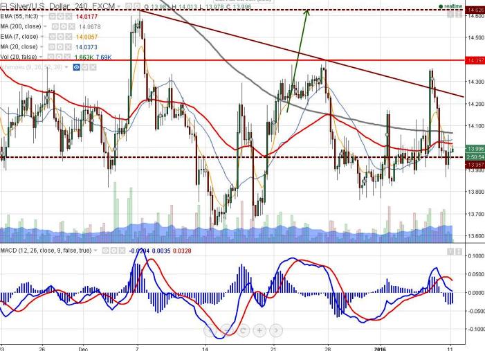 - The commodity jumped till $14.36 and declined till $3.96. It is currently trading at $14. Short term trend is still weak as long as resistance $14.40 holds.