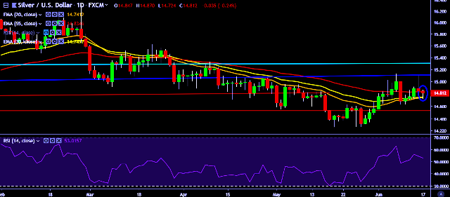 - XAG/USD is currently trading around $14.80 marks.