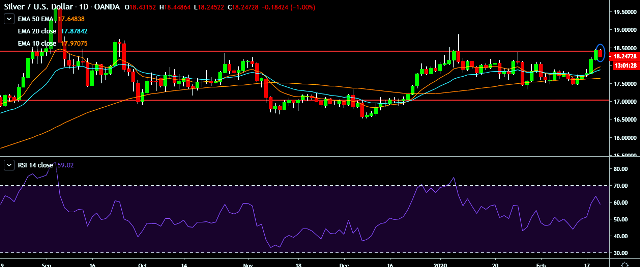 - XAG/USD is currently trading around $18.25 marks.