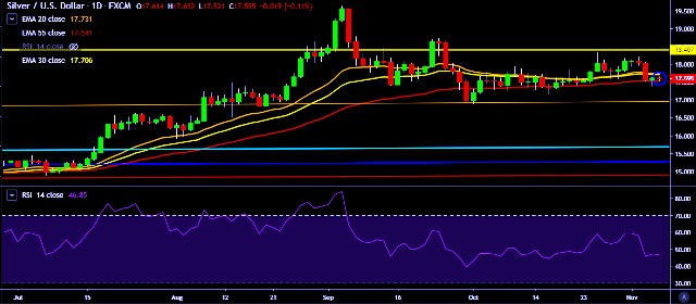 - XAG/USD is currently trading around $17.60 marks.