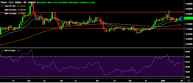 - XAG/USD is currently trading around $18.04 marks.