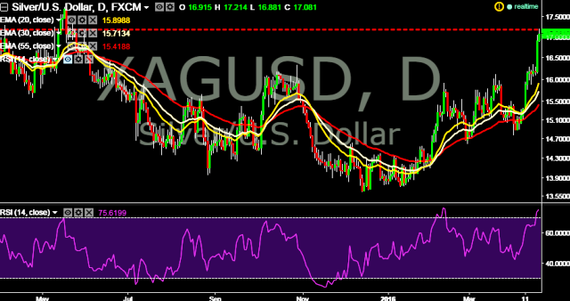 We prefer to take long position in XAG/USD around $17.04, stop loss $16.88 and target $17.22/$17.45 marks.