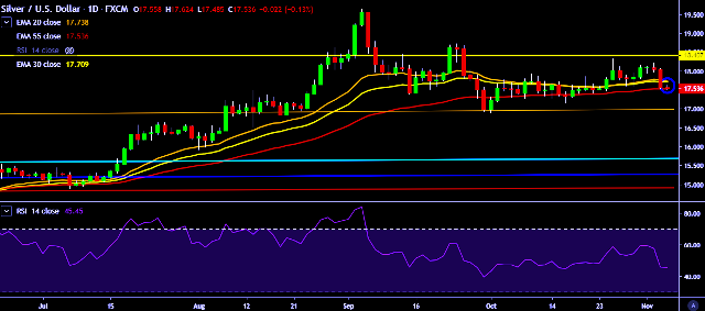 - XAG/USD is currently trading around $17.54 marks.