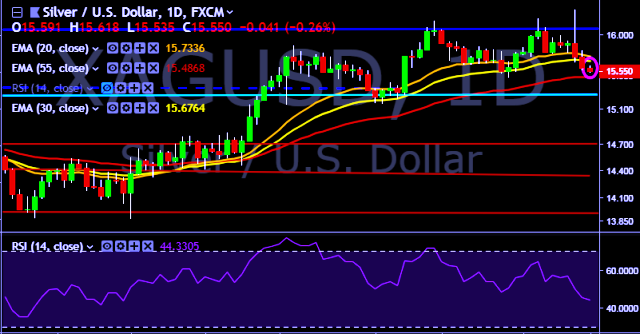 We prefer to take short position on XAG/USD around $15.56, stop loss at $15.62 and target of $15.47/$15.40.