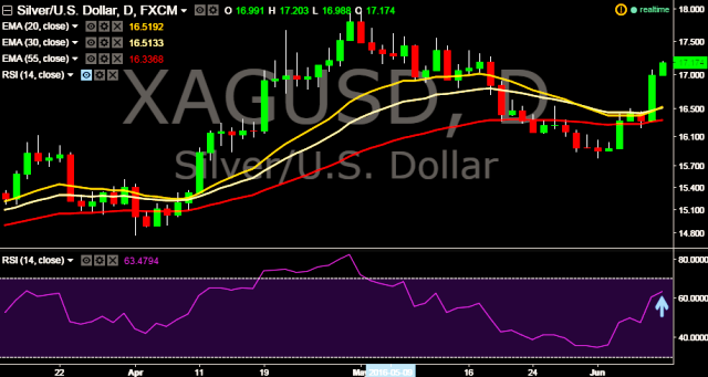 We prefer to take long position in XAG/USD at $17.15, stop loss $16.98 and target $17.35/ $17.42 marks.