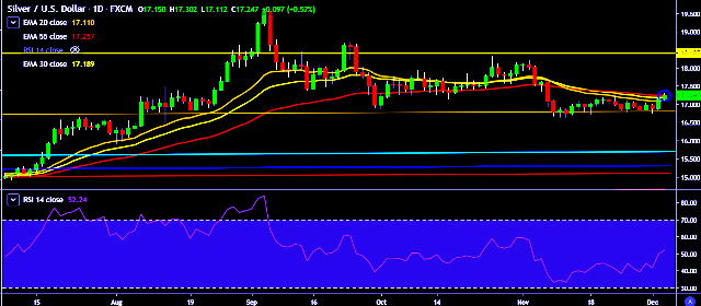 We prefer to take long position on XAG/USD around 17.20, stop loss at $17.02 and target of $17.40/$17.68.