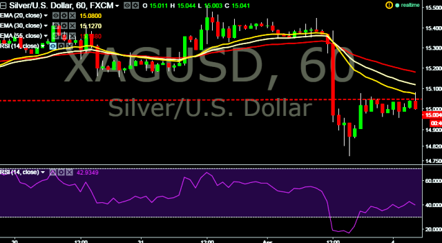 We prefer to tale short position in XAG/USD around $15.08, stop loss $15.15 and target $14.77 levels.