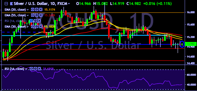 We prefer to take long position on XAG/USD around $14.98, stop loss at $14.87 and target of $15.09/$15.22.
