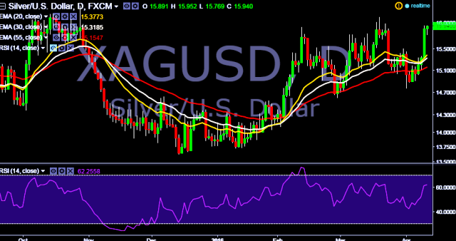 We prefer to take long position in XAG/USD only above $15.98, stop loss $15.83 and target $16.34 marks.