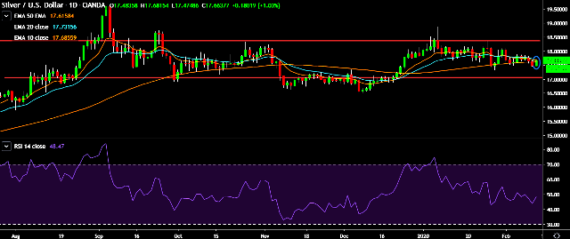 We prefer to take long position on XAG/USD around $17.65, stop loss at $17.47 and target of $17.90/$18.02.