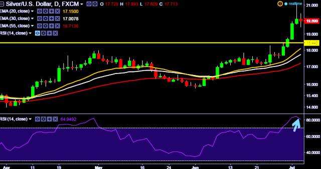 We prefer to take short position in XAG/USD around $19.95, stop loss at $20.05 and target $19.79/ $19.65 marks.