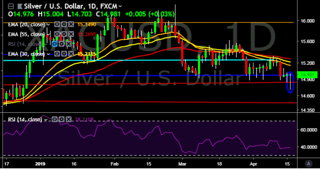 - XAG/USD is currently trading around $14.98 marks.