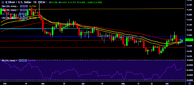 We prefer to take long position on XAG/USD around $14.80, stop loss at $14.70 and target of $14.99/$15.08/$15.22.