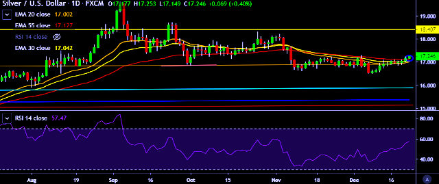 - XAG/USD is currently trading around $17.24 marks.