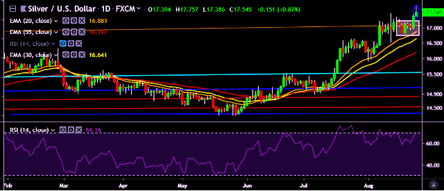 - XAG/USD is currently trading around $17.53 marks.