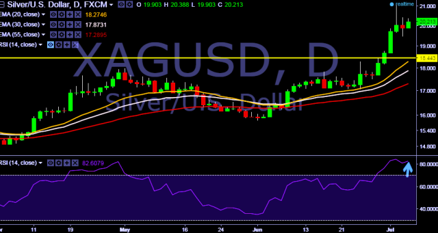 We prefer to take long position in XAG/USD around $20.19, stop loss at $19.90 and target $20.43/ $20.78 marks.