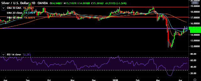 - XAG/USD is currently trading around $15.18 marks.