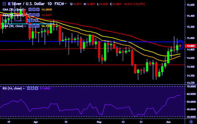 - Intraday bias remains neutral till the time pair holds key resistance at $14.87 mark.