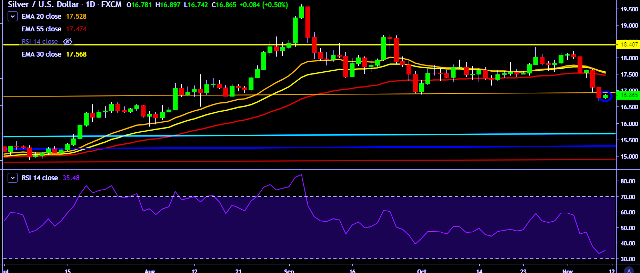 We prefer to take long position on XAG/USD only above $16.92, stop loss at $16.72 and target of $17.22.