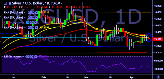We prefer to take short position on XAG/USD around $15.20, stop loss at $15.32 and target of $15.12/$15.02.