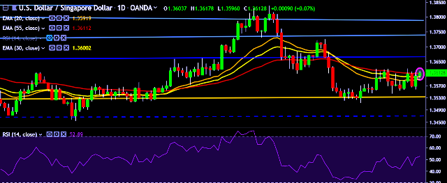 We prefer to take long position on USD/SGD around 1.3605, stop loss at 1.3590 and target of 1.3680.
