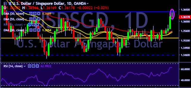 - USD/SGD is currently trading around 1.3617 marks.