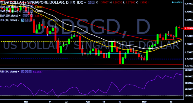 We prefer to take short position in USD/SGD only below 1.3775, stop loss 1.3828 and target 1.3715/ 1.3628 levels.