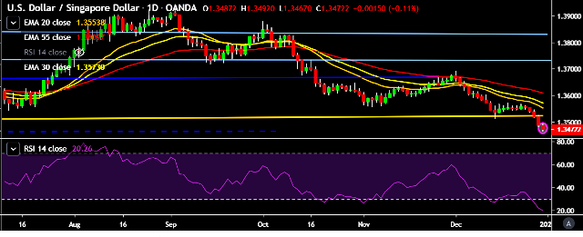 - Important to note here that 20D, 30D and 55D EMA heads down and confirms the bearish trend in a daily chart.