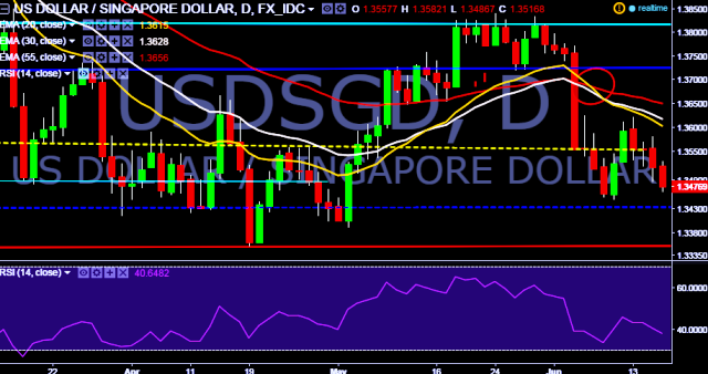 We prefer to take short position in USD/SGD at 1.3485, stop loss 1.3582 and target 1.3404/1.3361 marks.