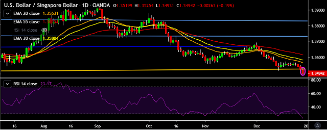 - USD/SGD is currently trading around 1.3492 marks.