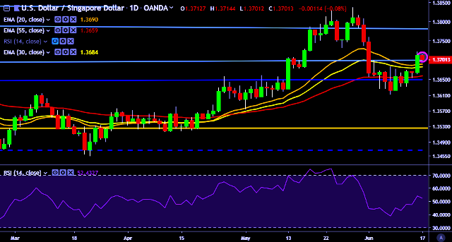 - USD/SGD is currently trading around 1.3703 marks.