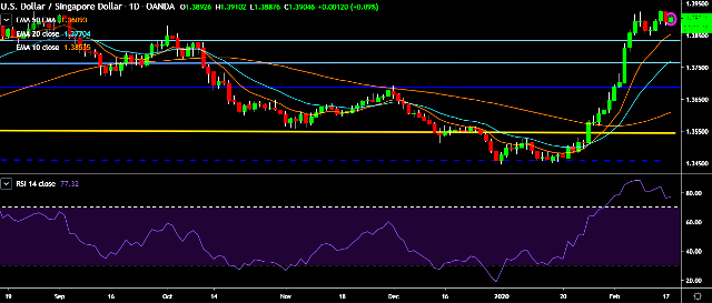 We prefer to take long position on USD/SGD around 1.3900, stop loss 1.3865 and target of 1.3942/1.3988.