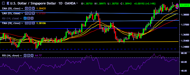 We prefer to take long position on USD/SGD around 1.3890, stop loss at 1.3870 and target of 1.3945/1.3984.