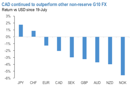 However, what has not reversed yet is CAD’s ongoing outperformance against all its G10 high-beta and most EM peers (refer 1st chart).
