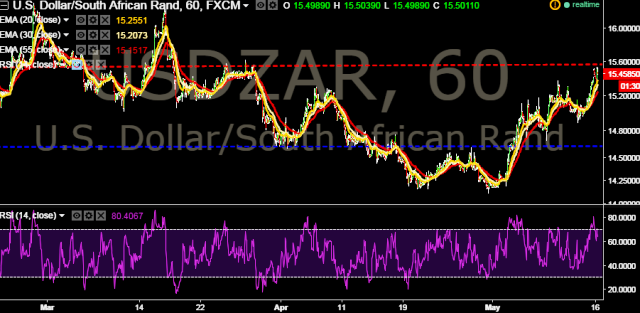 We prefer to take long position in USD/ZAR only above 15.53, stop loss 15.45 and target 15.57/15.62 marks respectively.